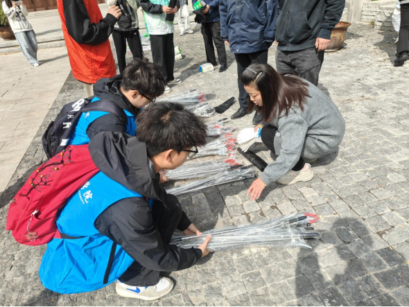 启动仪式结束后,各学院志愿者领队有序领取清洁工具,投入到烟头、烟盒及白色垃圾的集中捡拾中,以实际行动践行“烟头不落地”的承诺。